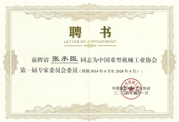 沈陽隆基董事長張承臣當選中國重型機械工業協會第一屆專家委員會委員