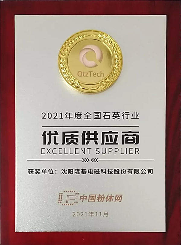 2021全國石英大會頒獎典禮隆重舉行,隆基電磁獲得“2021年度全國石英行業優質供應商”稱號。 2021-11-18