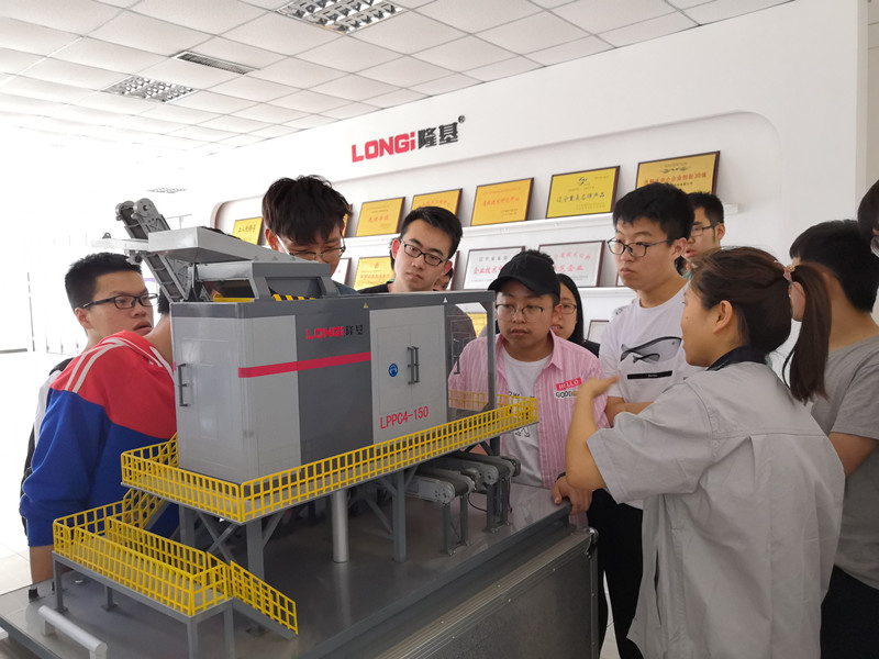 在工作人員的帶領(lǐng)下,師生們首先參觀了公司展廳,在反映隆基發(fā)展歷程的展板前,東大的師生們了解了公司的經(jīng)營(yíng)規(guī)模、發(fā)展歷程、企業(yè)文化及獲得榮譽(yù)。隨后,師生們前往公司研發(fā)中心及生產(chǎn)車(chē)間,對(duì)公司的研發(fā)實(shí)驗(yàn)?zāi)芰吧a(chǎn)制造實(shí)力進(jìn)行了了解。參觀過(guò)程中,工作人員向同學(xué)介紹了除鐵器、LPPC分選機(jī)、渦流分選機(jī)等產(chǎn)品的生產(chǎn)工藝、工作原理及產(chǎn)品性能等,并熱情地解答了同學(xué)們?cè)趨⒂^過(guò)程中提出的技術(shù)問(wèn)題。