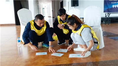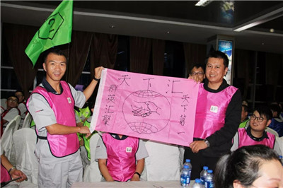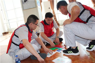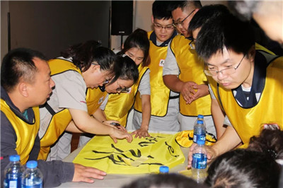 活動伊始,在拓展教練的指導下,參訓員工分成六個隊伍,通過選隊長、取隊名、繪隊標、定隊歌等,快速地融入了各自的團隊。