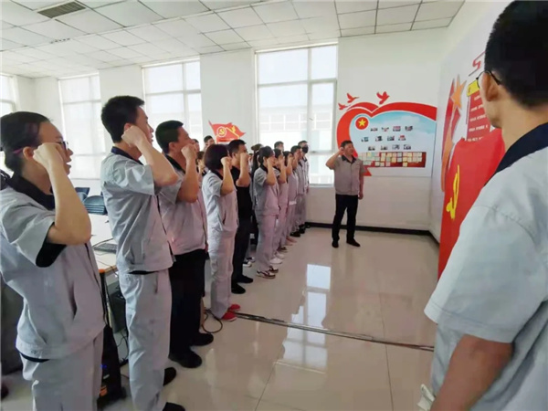 活動開始前,與會全體黨員在黨支部書記徐家林的領(lǐng)誓下,面向鮮紅黨旗,莊嚴(yán)舉起右手,重溫了入黨誓詞,聲音洪亮,誓言鏗鏘。